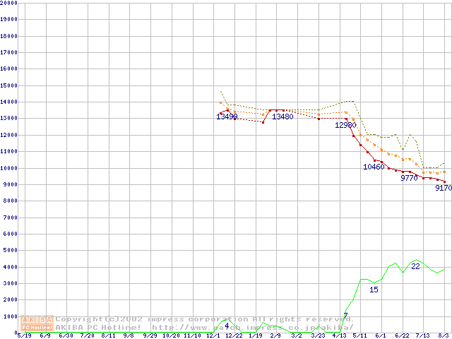 DiamondMax D540X (5400rpm,UltraATA/100,40GB/Platter,流体軸受)の最安値推移