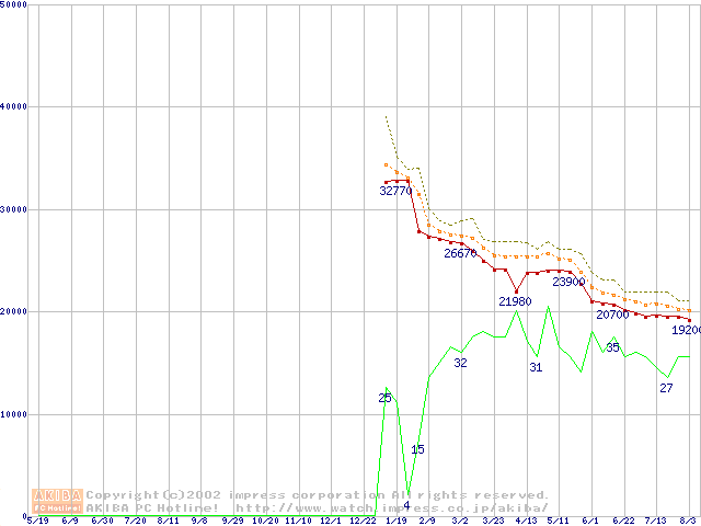 Pentium 4 1.80A GHz リテールパッケージの価格推移