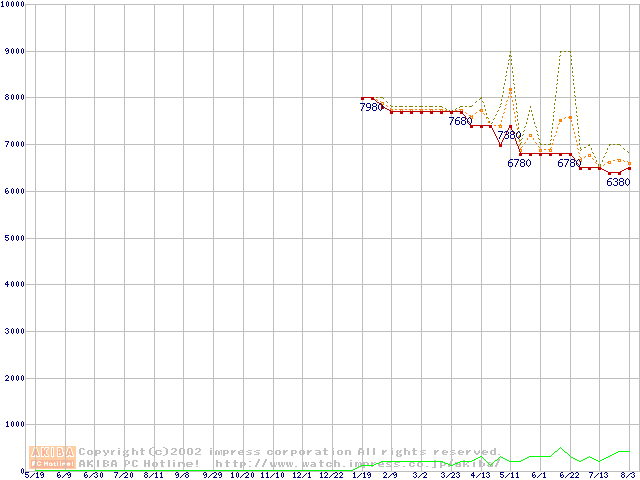 Socket 370 (PGA,FSB 100MHz,L2 64KB)の最安値推移