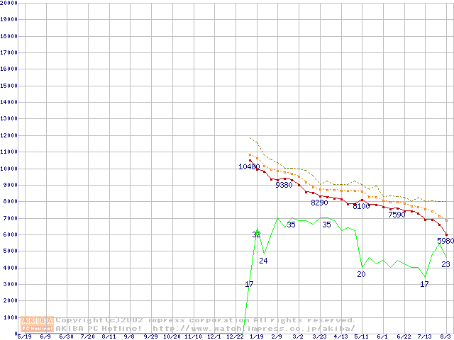 Celeron 1A GHz FC-PGA2 リテールパッケージの価格推移