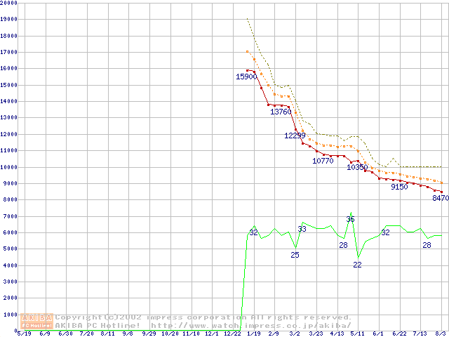 Celeron 1.30GHz FC-PGA2 リテールパッケージの価格推移