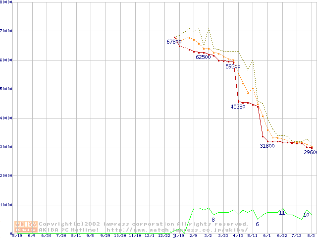 Socket 603 (micro-PGA,L2 512KB,Hyper-Threading,Prestonia)の最安値推移