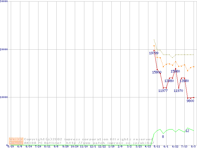 PC3000(DDR366) DDR SDRAM DIMMの最安値推移