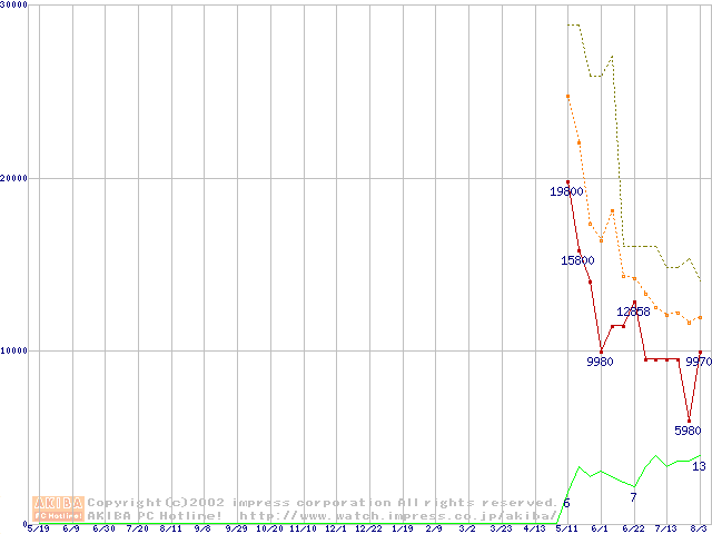PC3200(DDR400) DDR SDRAM DIMMの最安値推移