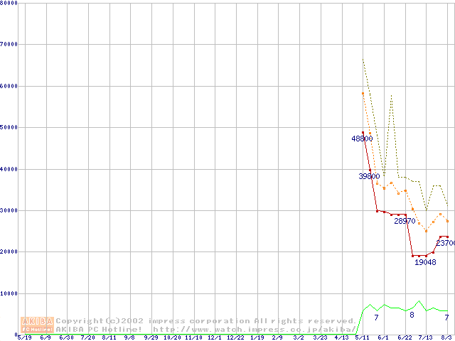 PC3200(DDR400) DDR SDRAM DIMMの最安値推移