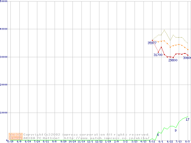 メモリ主要製品(最安値1万円以上)の最安値推移