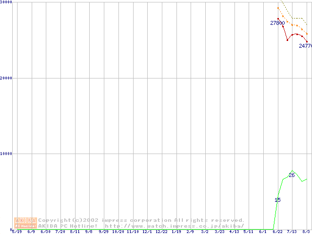 Socket A (OPGA,FSB 266MHz,L2 256KB)の最安値推移