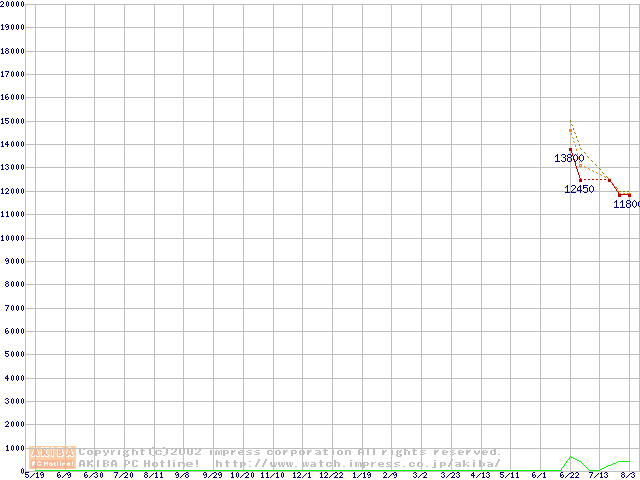 PC800-40 DRDRAM RIMM3200(32bit)の最安値推移