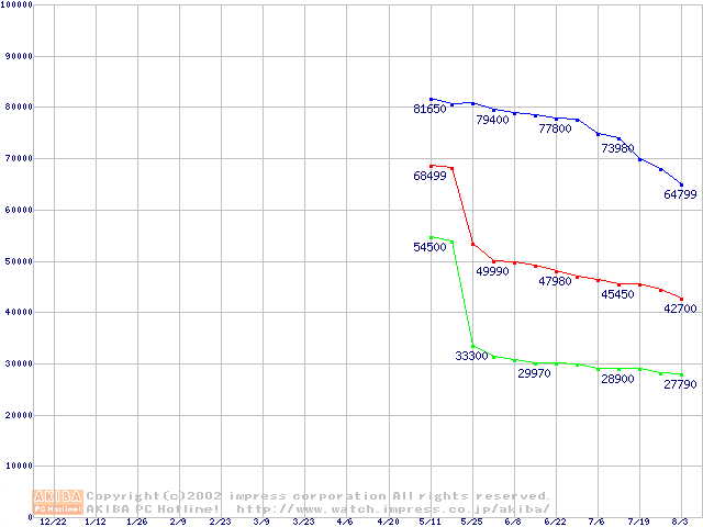 | [↑前グラフ]: | PC1066 DRDRAM RIMM ECC対応の最安値推移 |