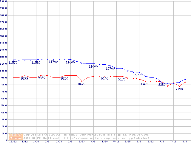 | [↑前グラフ]: | WD Caviar (7200rpm,UltraATA/100,2MB)の最安値推移 |