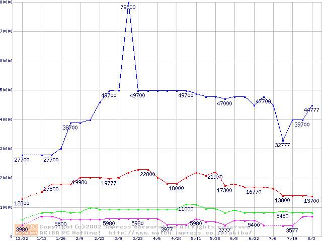 | [↑前グラフ]: | PC133 SDRAM DIMM CasLatency=3 ECC対応の最安値推移 |