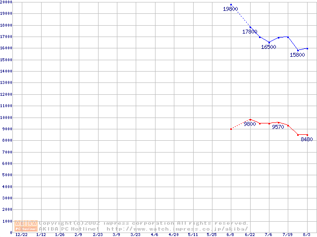 | [↓次グラフ]: | PC1066 DRDRAM RIMM4200(32bit)の最安値推移 |