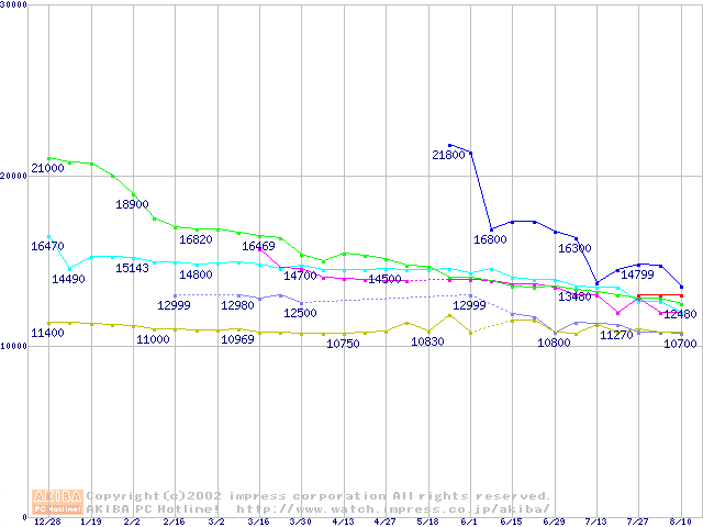 | [↓次グラフ]: | 2.5インチHDD主要製品(最安値1万5千円~2万円未満)の最安値推移 |