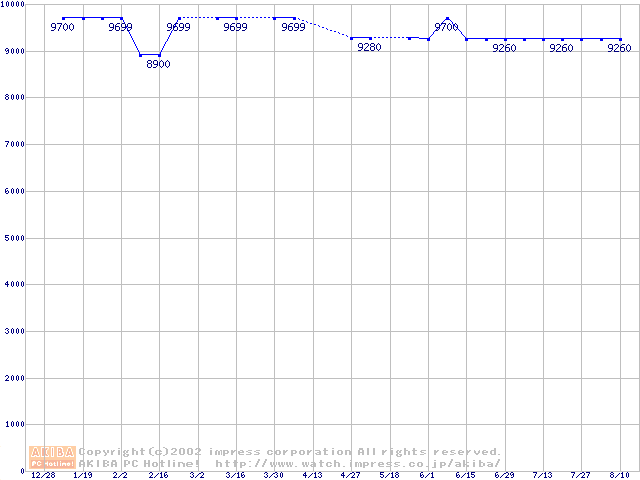 | [↓次グラフ]: | 2.5インチHDD 10GB~20GB未満(9.5mm厚)の最安値推移 |