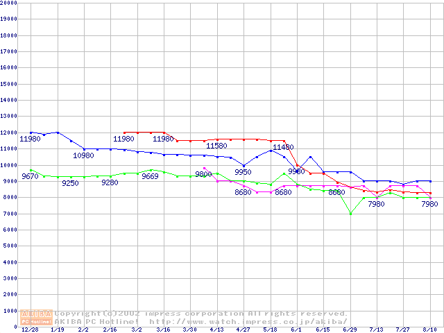 | [↑前グラフ]: | 2.5インチHDD 10GB未満(9.5mm厚)の最安値推移 |