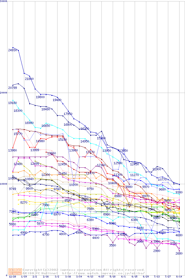 CPU主要製品の最安値推移