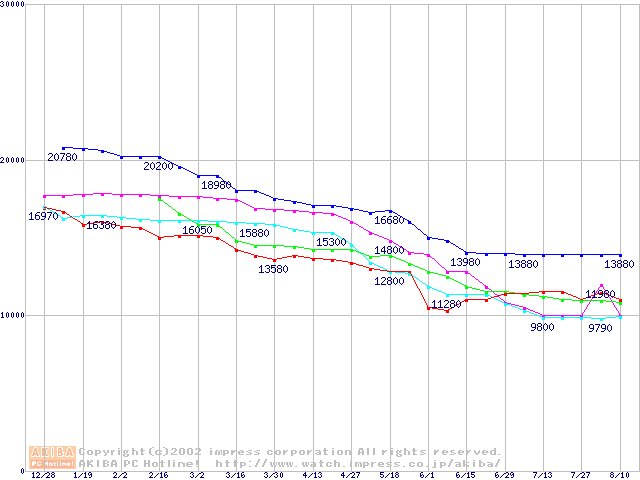 | [↓次グラフ]: | HDD 100GB以上(5400rpmクラス)の最安値推移 |