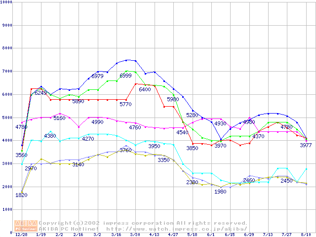 メモリ主要製品(最安値5千円~1万円未満)の最安値推移