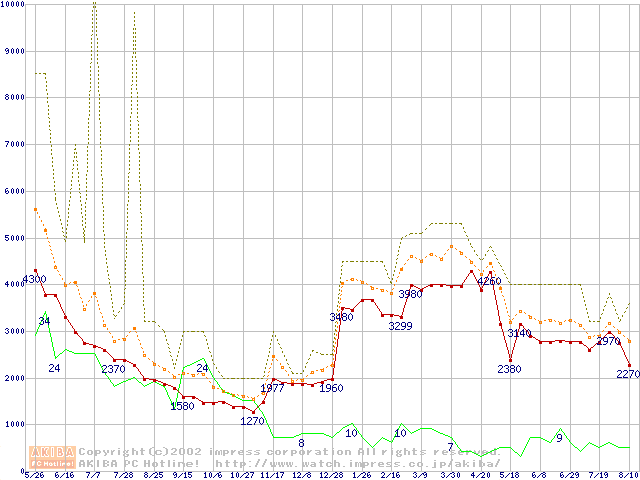 PC133 SDRAM DIMM CasLatency=2の最安値推移
