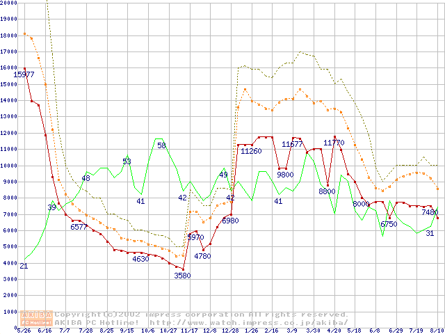 PC133 SDRAM DIMM CasLatency=3の最安値推移