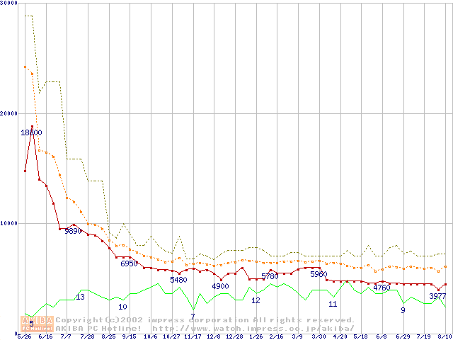 PC800-45 DRDRAM RIMM ECC対応の最安値推移