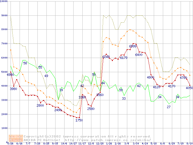 PC100 SDRAM DIMM CasLatency=2の最安値推移