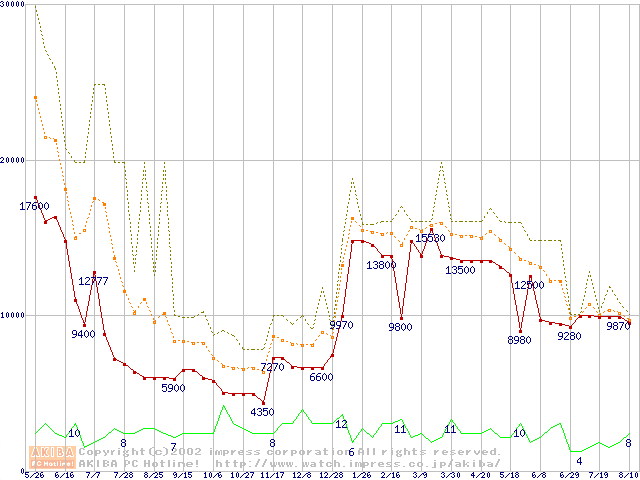 PC100 SDRAM DIMM CasLatency=2の最安値推移