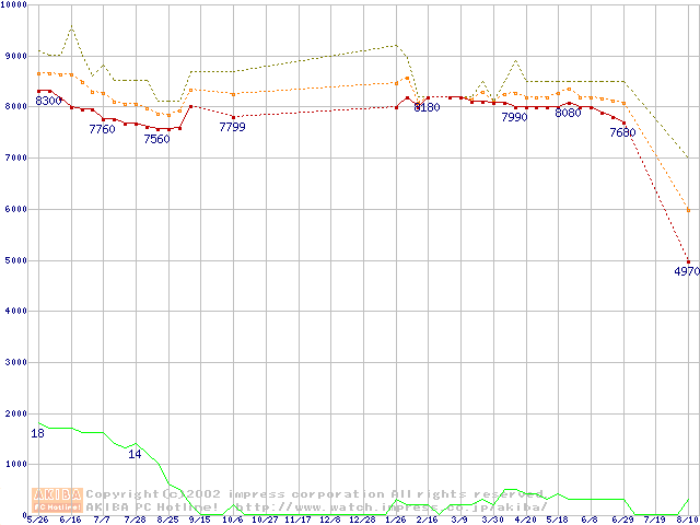 U5 (5400rpm,UltraATA/100 512KB)の最安値推移