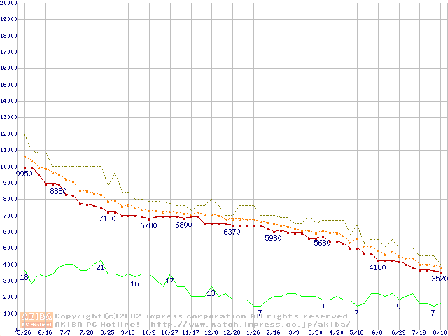 Socket A (Spitfire,PGA,FSB 200MHz,L2 64KB)の最安値推移