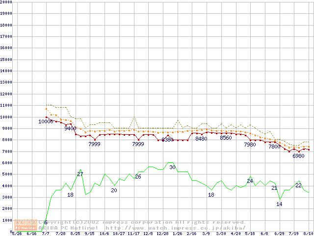 HDD 20GB~30GB未満(5400rpmクラス)の最安値推移