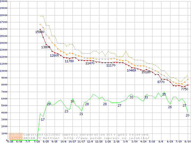 Barracuda ATA IV (7200rpm,UltraATA/100,2MB,40GB/Platter,流体軸受)の最安値推移