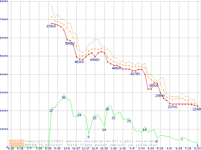 Socket 478 (micro-PGA,FSB 400MHz,L2 256KB,Willamette)の最安値推移