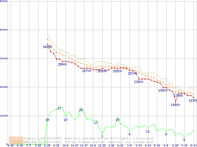 WD Caviar (7200rpm,UltraATA/100,2MB)の最安値推移