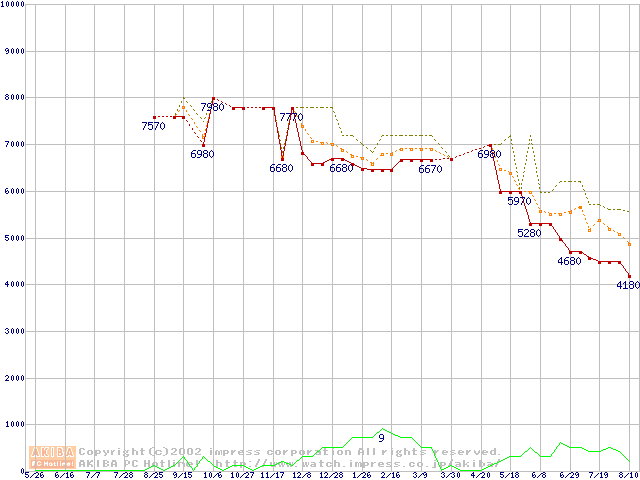 Socket 370 (PGA,FSB 133MHz,L2 64KB)の最安値推移