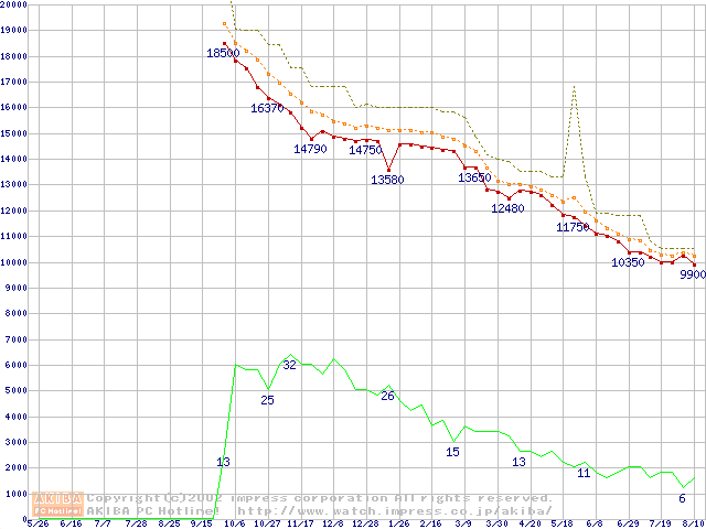 DiamondMax Plus D740X (7200rpm,UltraATA/133,40GB/Platter)の最安値推移
