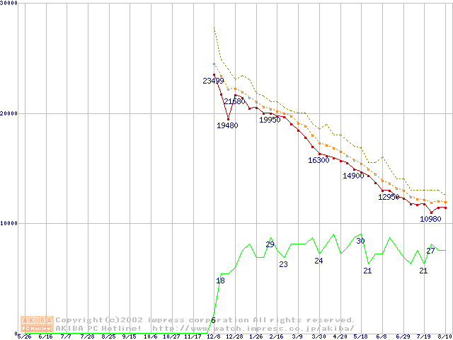 DiamondMax Plus D740X (7200rpm,UltraATA/133,40GB/Platter,流体軸受)の最安値推移