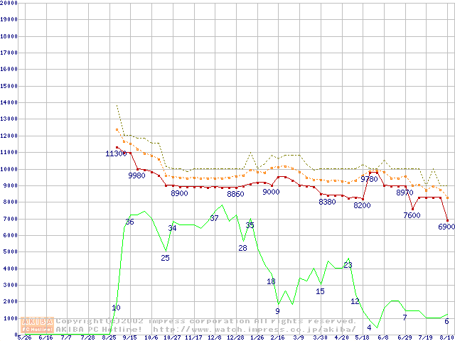 Celeron 1GHz FC-PGA リテールパッケージの価格推移