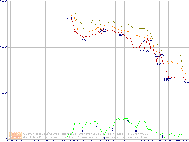 Socket A (Palomino,OPGA,FSB 266MHz,L2 256KB)の最安値推移