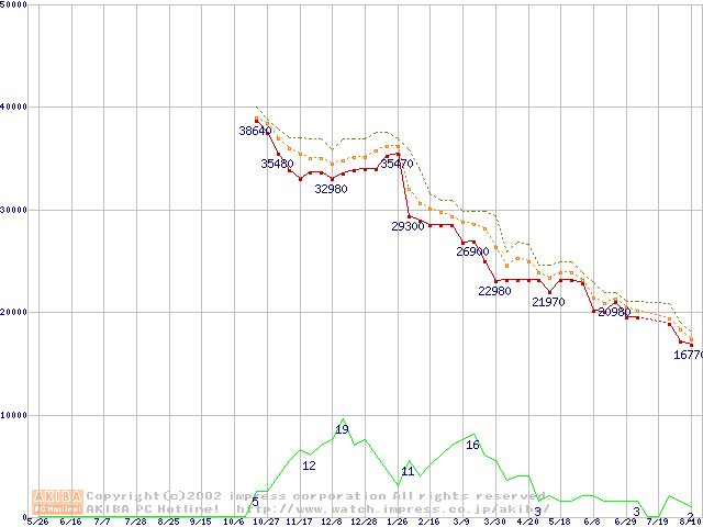 Socket A (Palomino,OPGA,FSB 266MHz,L2 256KB)の最安値推移