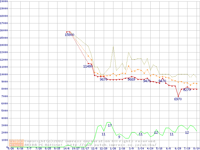Travelstar 15GN (9.5mm,4200rpm,UltraATA/100,512KB,流体軸受)の最安値推移
