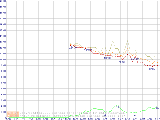 Travelstar 15GN (9.5mm,4200rpm,UltraATA/100,512KB,流体軸受)の最安値推移