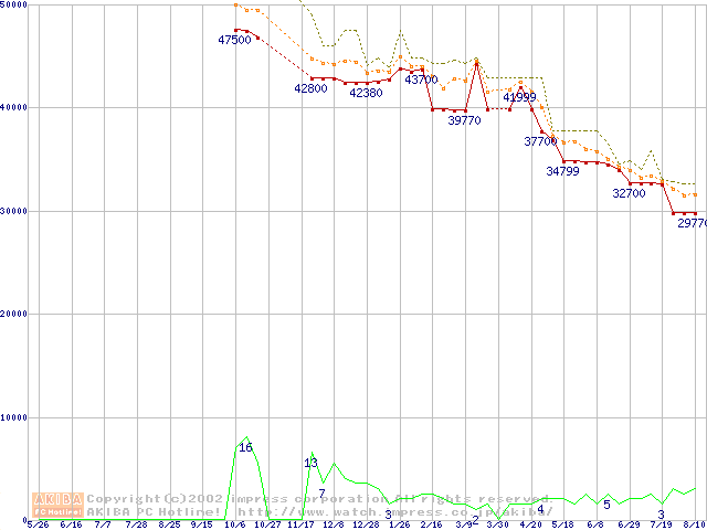Travelstar 48GH (12.5mm,5400rpm,UltraATA/100,2MB,流体軸受)の最安値推移