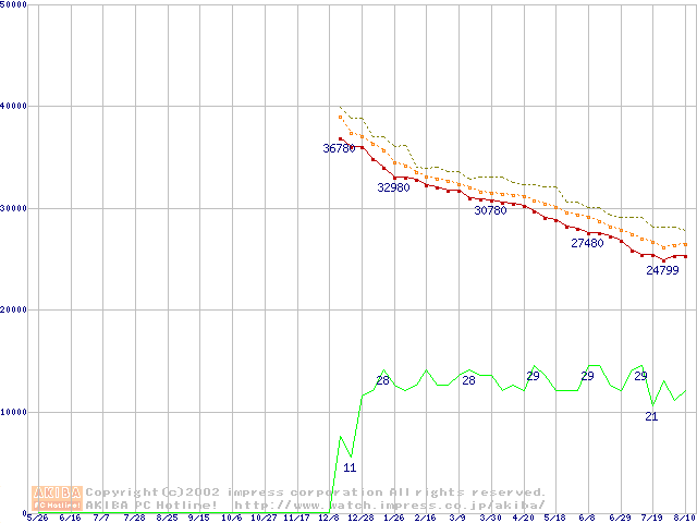 DiamondMax D540X (5400rpm,UltraATA/133,40GB/Platter)の最安値推移