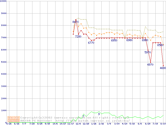 Socket 370 (PGA,FSB 133MHz,L2 64KB)の最安値推移