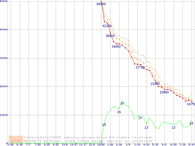 Socket A (OPGA,FSB 266MHz,L2 256KB)の最安値推移