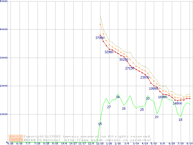 Deskstar 120GXP (7200rpm,UltraATA/100 2MB)の最安値推移