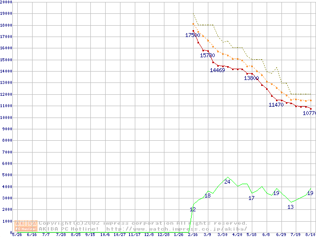 DiamondMax D540X (5400rpm,UltraATA/100,40GB/Platter,流体軸受)の最安値推移