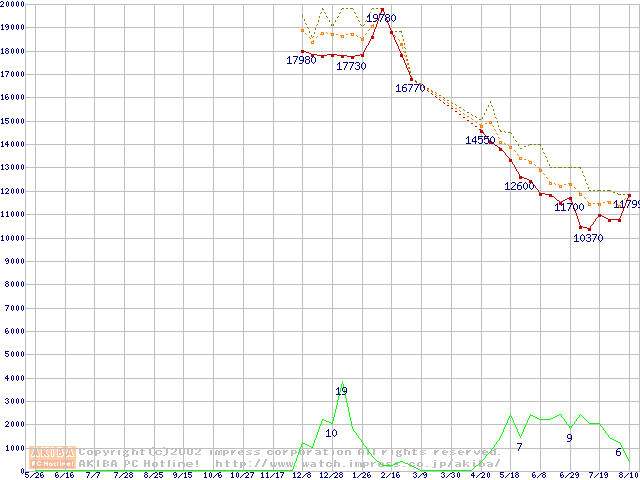 DiamondMax D540X (5400rpm,UltraATA/100,40GB/Platter,流体軸受)の最安値推移