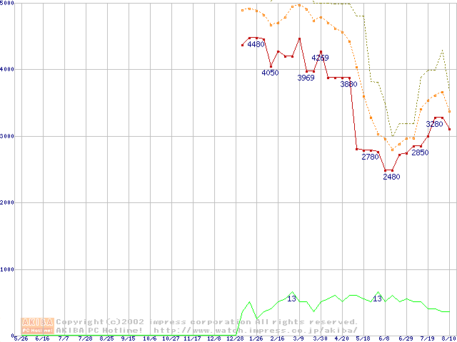 PC2100(DDR266) DDR SDRAM DIMM(CL 2.0)の最安値推移