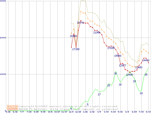 PC2700(DDR333) DDR SDRAM DIMMの最安値推移